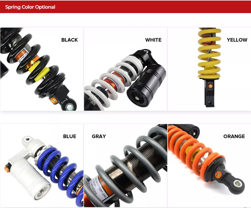 Zunanja zračna blazina 280 mm motociklistični absorber odlikuje nastavljivo vzmetno prednapetost, kar kolesarjem omogoča, da se spremenijo , nastavite navzdol, da bo vzmet težje, prilagodite se, da bo vzmet mehke